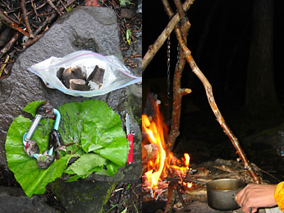 山の朝は3時起き。寒いので、焚き火をおこしてあたたまって、ラーメンつくって、