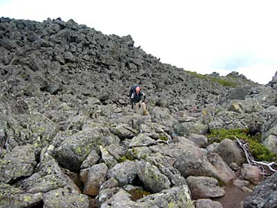 とうとう稜線に出たと思ったら、見渡す限り大きな岩岩岩。よじ登って越えてゆく。