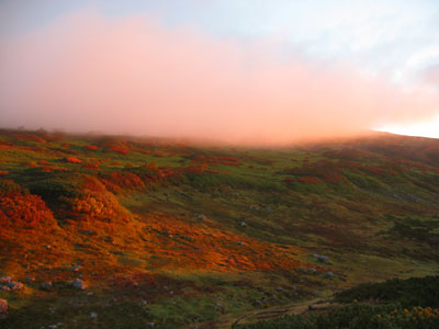 稜線での朝は美しい。冬になる前の朝の空気、きもちいい。