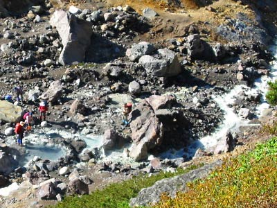 さくさく下っていくと、硫黄のにおい。中岳温泉だー!!